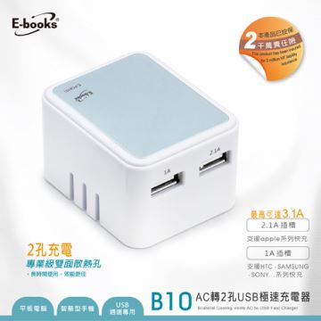 {{ INAME || 'E-books B10 AC轉2孔3.1AUSB極速充電器' }}