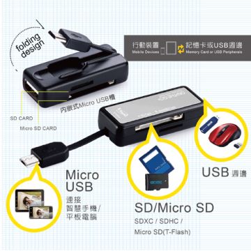 • ‧連接手機/平板,最高可讀取32GB記憶卡。