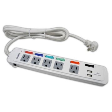 • ◆專利雙USB附燈開關,方便省電◆變壓器專用插座,可避免阻礙其他插座