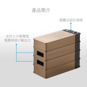 {{ INAME || 'doocoo i chargerV 3.1A 雙孔充電器-金' }}